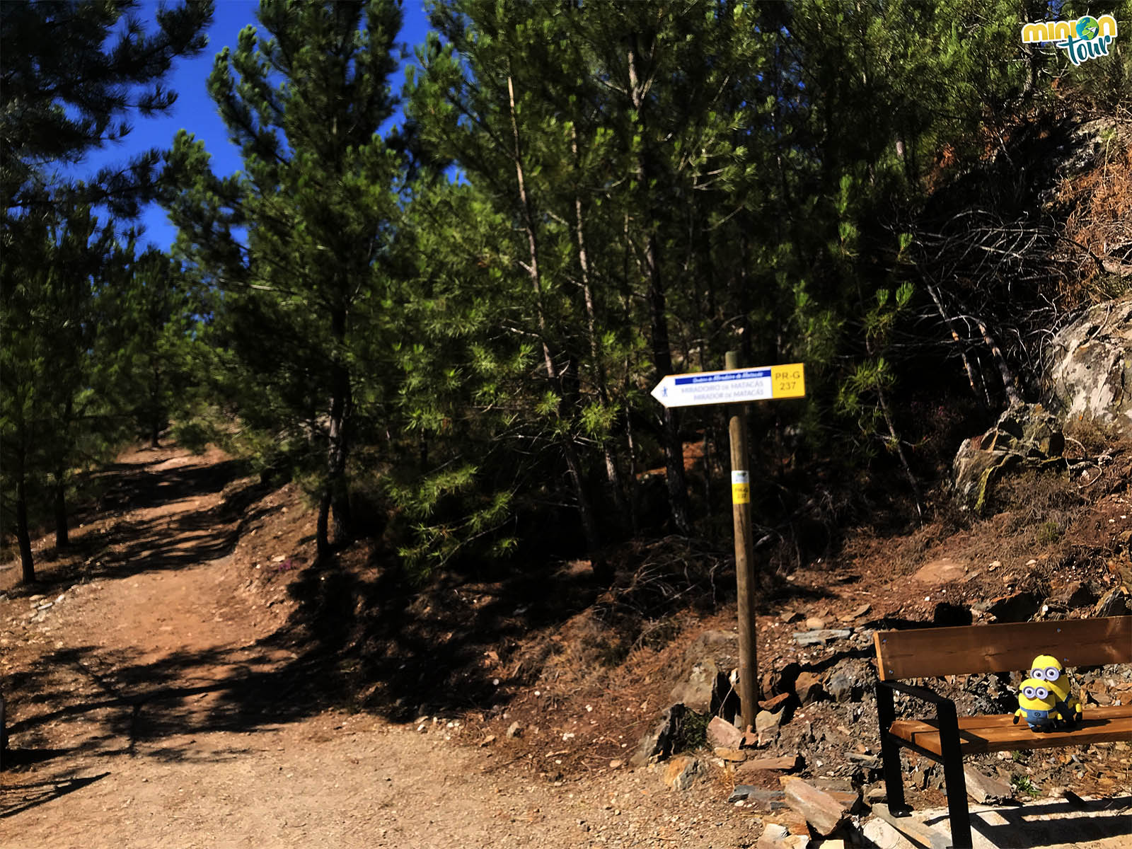 El primer tramo era recto, pero ya vemos que aquí empieza la subidita. Tampoco nos extraña, porque si es un mirador y tiene vistas 👁️… tiene que estar alto. ¿No crees? 🙄 Por lo menos la señal nos indica que vamos por buen camino 😊.